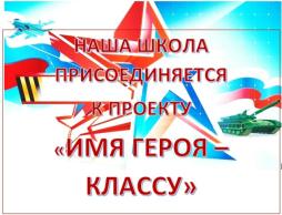 Наша школа присоединяется к проекту "Имя героя - классу". Каждому классу присваивается имя героя - человека, который своими подвигами, своей жизнью, ратным трудом, отстаивал честь родной страны. #МойКлассНоситИмяГероя